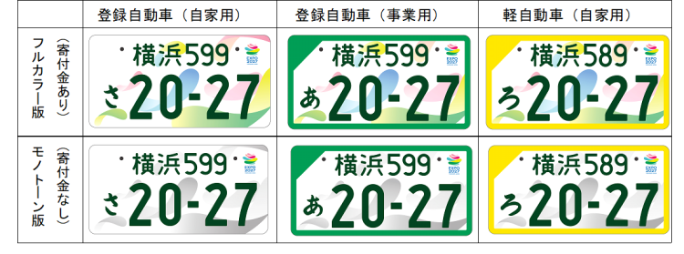 GREEN×EXPO 2027(2027年国際園芸博覧会)の開催を記念したナンバープレートです。事業用軽自動車(黒ナンバー)及び二輪車は交換の対象外ですが、それ以外の新車・中古車に取り付けられます。