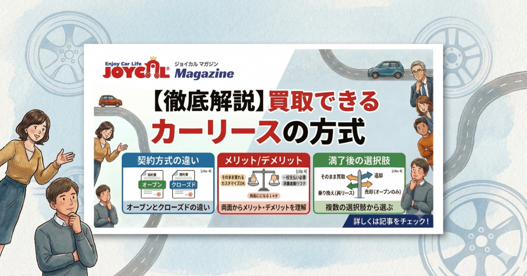 必要があるため通常のカーリースの場合、そのまま継続して乗るか、購入するかなどを選べます。